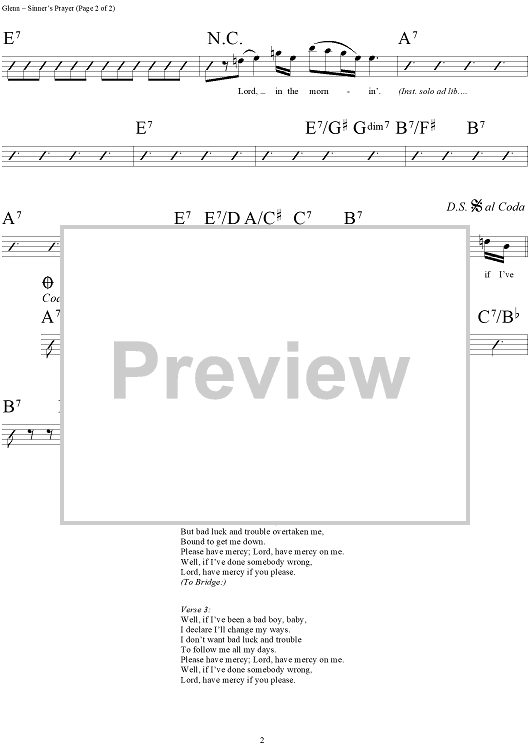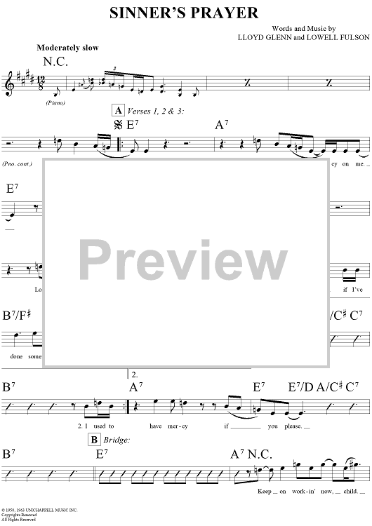 Digital Sheet Music for Sinner's Prayer by Lowell Fulson, Lloyd Glenn scored for Lead Sheet; id:291689