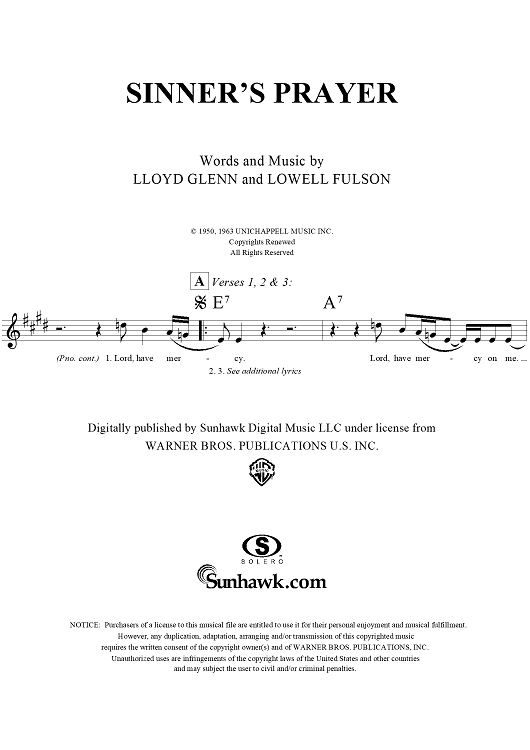 "Sinner's Prayer" Sheet Music by Lowell Fulson