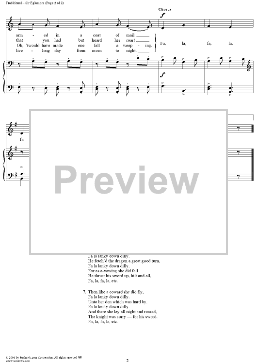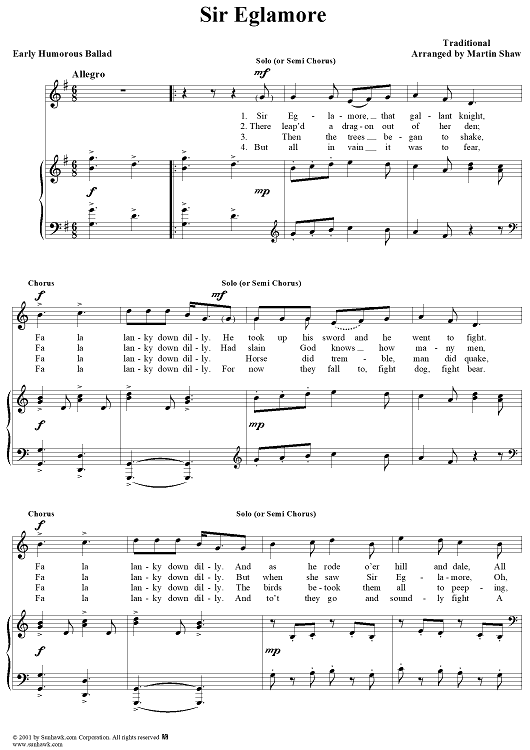 Digital Sheet Music for Sir Eglamore by Martin Shaw, Traditional scored for Piano/Vocal; id:257818