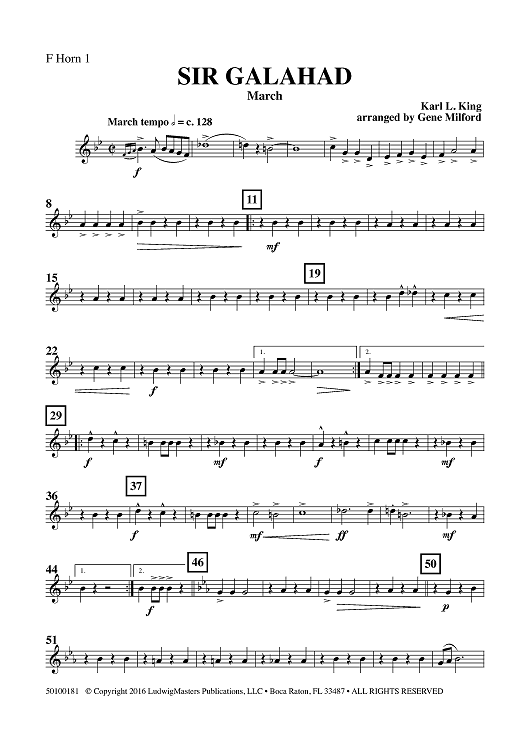 Digital Sheet Music for Sir Galahad - March - Horn 1 in F by , Gene Milford, Karl King scored for Concert Band; id:461627