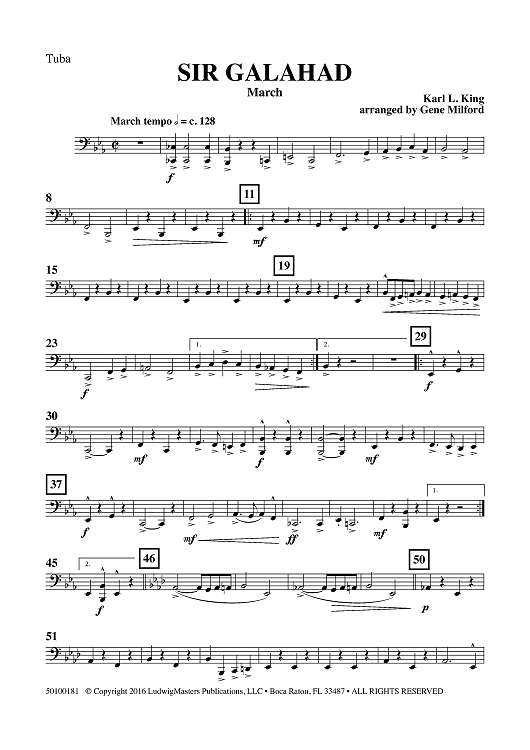 Digital Sheet Music for Sir Galahad - March - Tuba by , Gene Milford, Karl King scored for Concert Band; id:461636