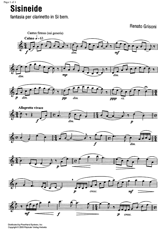Digital Sheet Music for Sisineide by , Renato Grisoni scored for B-flat Clarinet; id:343380