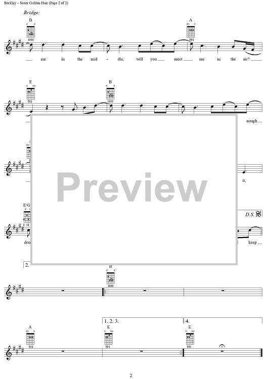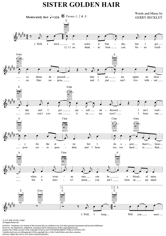 Digital Sheet Music for Sister Golden Hair by America, Gerry Beckley scored for Easy Guitar/Vocal; id:288450