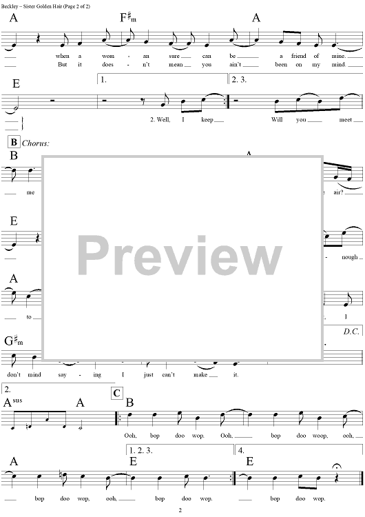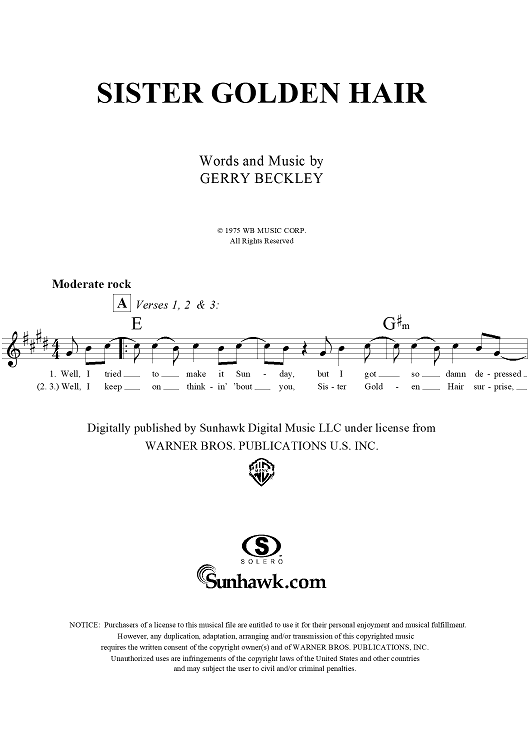 Digital Sheet Music for Sister Golden Hair by America, Gerry Beckley scored for Lead Sheet; id:293763