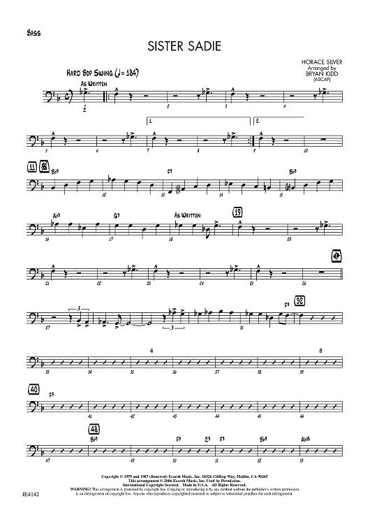 Digital Sheet Music for Sister Sadie - Bass by Horace Silver, Bryan Kidd scored for Jazz Ensemble; id:456172