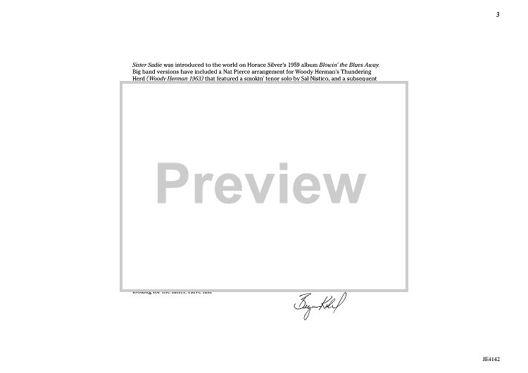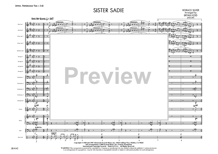 Digital Sheet Music for Sister Sadie - Score by Horace Silver, Bryan Kidd scored for Jazz Ensemble; id:456154