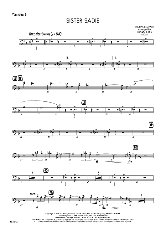 Digital Sheet Music for Sister Sadie - Trombone 3 by Horace Silver, Bryan Kidd scored for Jazz Ensemble; id:456166