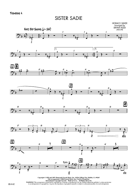 Digital Sheet Music for Sister Sadie - Trombone 4 by Horace Silver, Bryan Kidd scored for Jazz Ensemble; id:456167