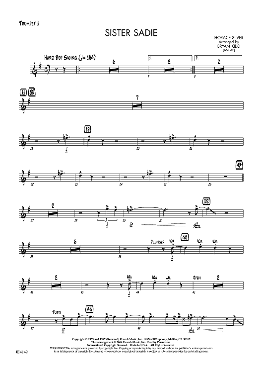 Digital Sheet Music for Sister Sadie - Trumpet 1 by Horace Silver, Bryan Kidd scored for Jazz Ensemble; id:456160