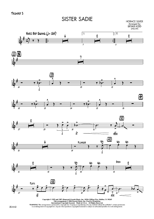 Digital Sheet Music for Sister Sadie - Trumpet 3 by Horace Silver, Bryan Kidd scored for Jazz Ensemble; id:456162