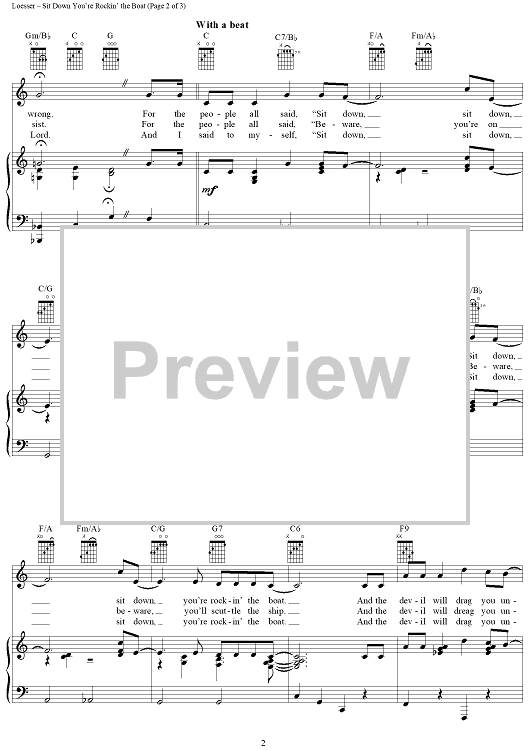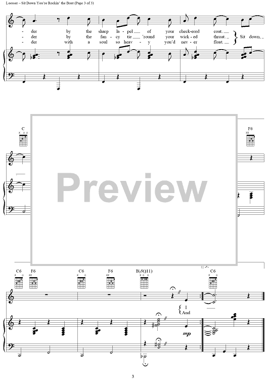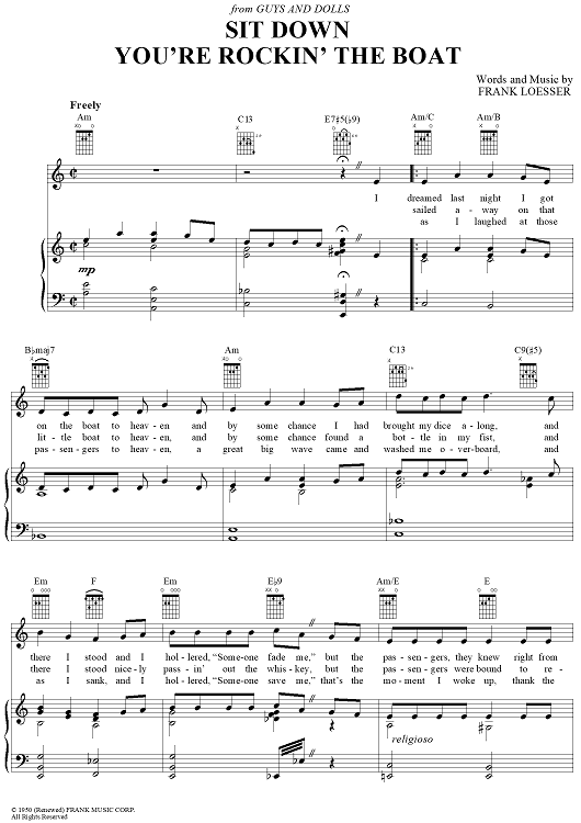 Digital Sheet Music for Sit Down You're Rockin' the Boat by Frank Loesser scored for Piano/Vocal/Chords; id:405696