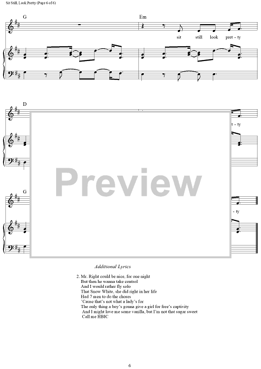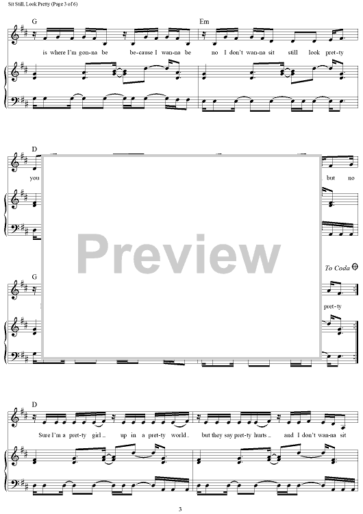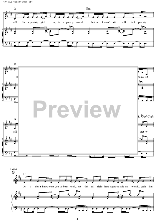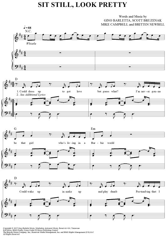 Digital Sheet Music for Sit Still, Look Pretty by Mike Campbell, Gino Barletta, Scott Bruzenak, Britten Newbill, Daya scored for Piano/Vocal/Chords; id:459098