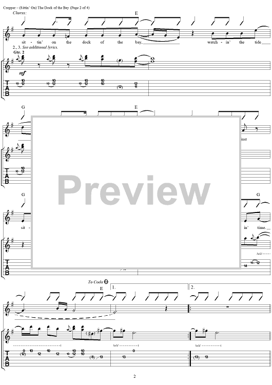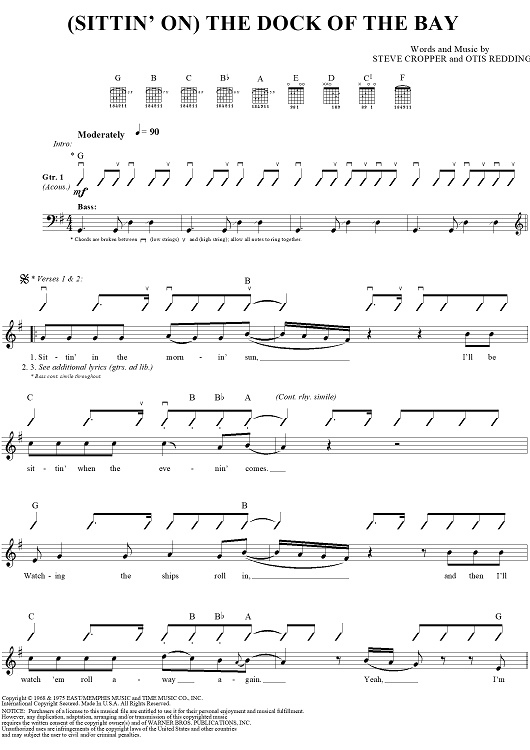Digital Sheet Music for (Sittin' On) The Dock of the Bay by Otis Redding, Kenn Chipkin, Steve Cropper scored for Guitar Tab/Vocal; id:120030