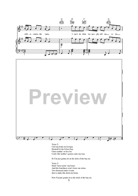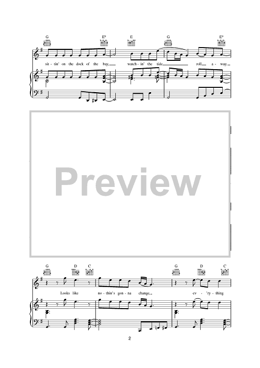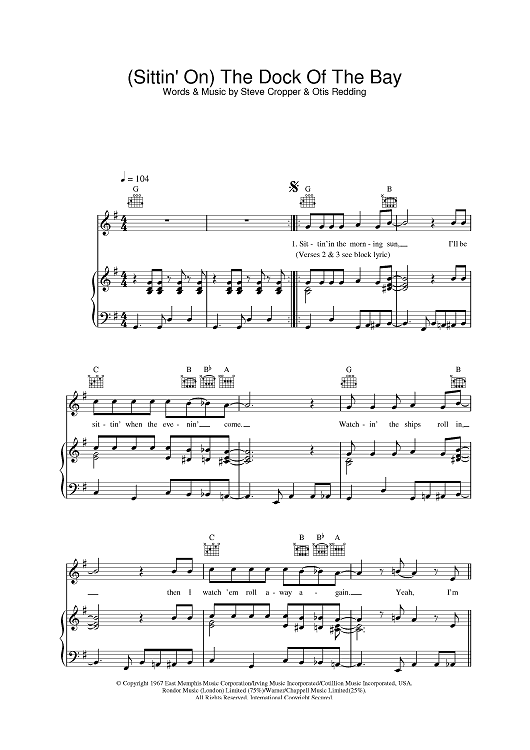 Digital Sheet Music for (Sittin' On) The Dock Of The Bay by Otis Redding scored for Piano/Vocal/Chords; id:375543