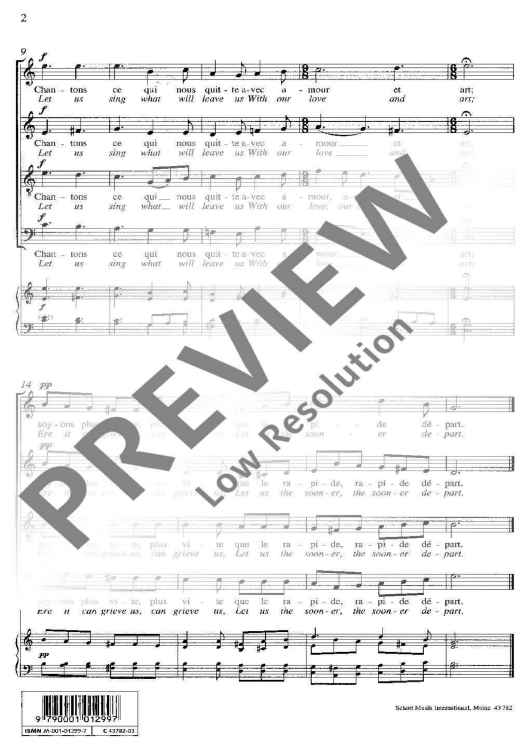 "Puisque tout passe" – [Since all is passing] is one of six songs for mixed choir from 1939. It is one of the most natural and spontaneous pieces among Hindemith's a cappella choral works. This work is framed by further poems of Rainer Maria Rilke.