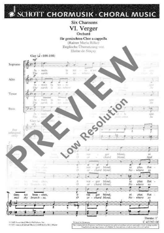 "Six Chansons - Choral Score" Sheet Music by Paul Hindemith