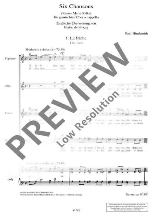 "Six Chansons - Choral Score" Sheet Music by Paul Hindemith