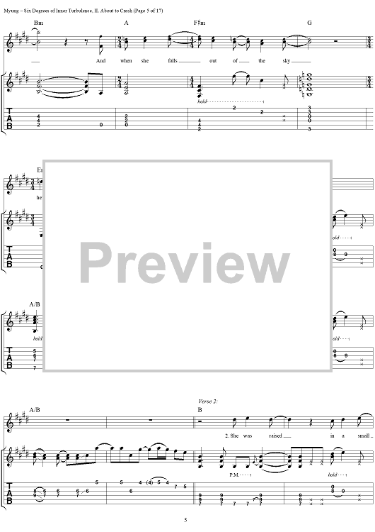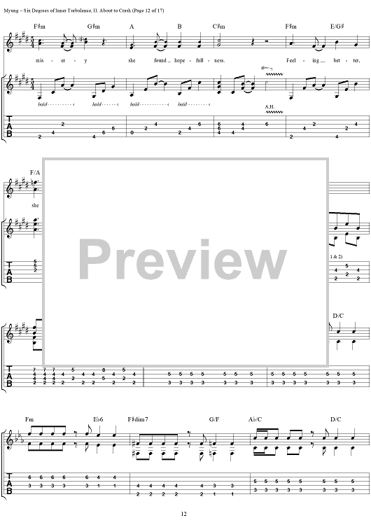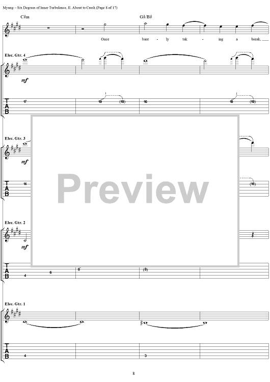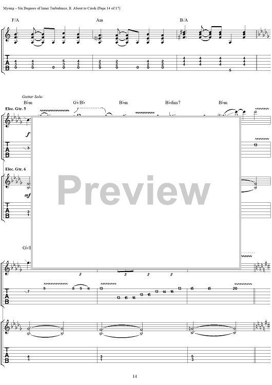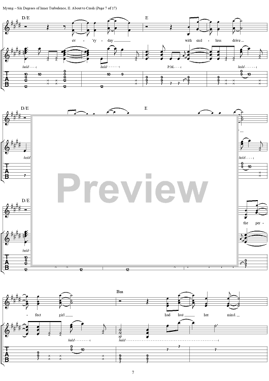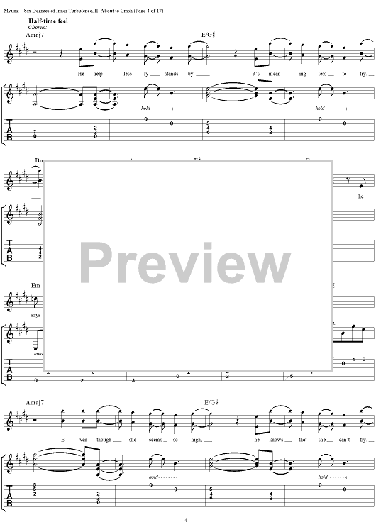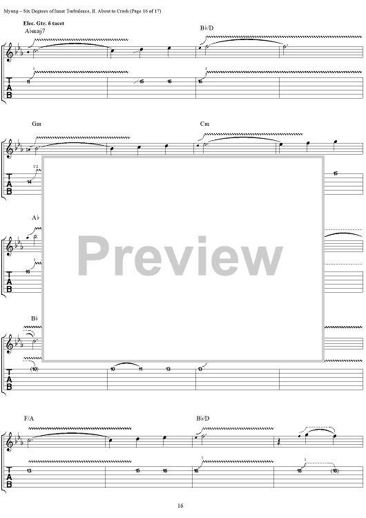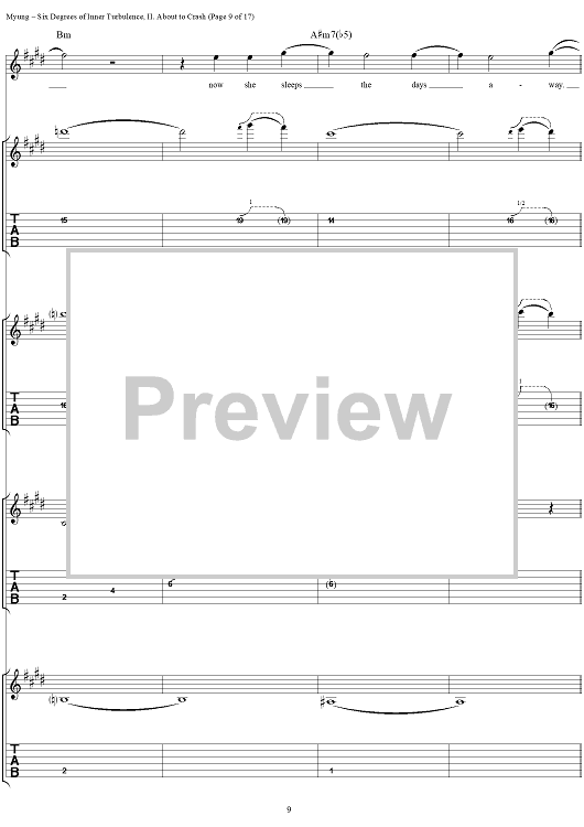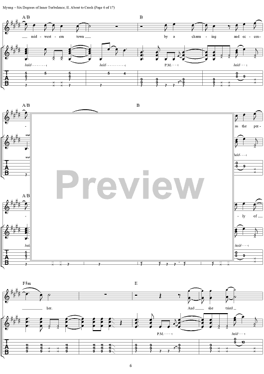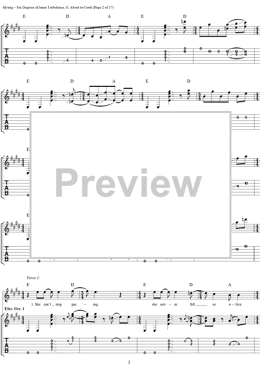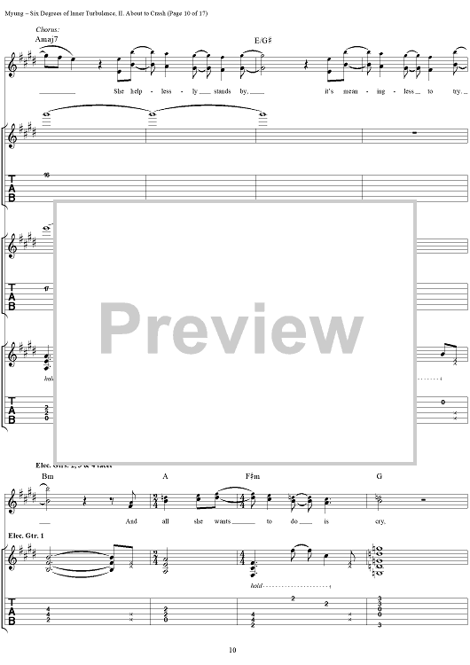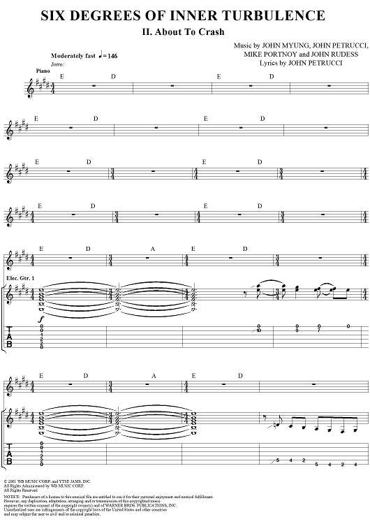 Digital Sheet Music for Six Degrees of Inner Turbulence - II. About to Crash by John Myung, Dream Theater, John Petrucci, Mike Portnoy, Jordan Rudess scored for Guitar Tab/Vocal; id:293420