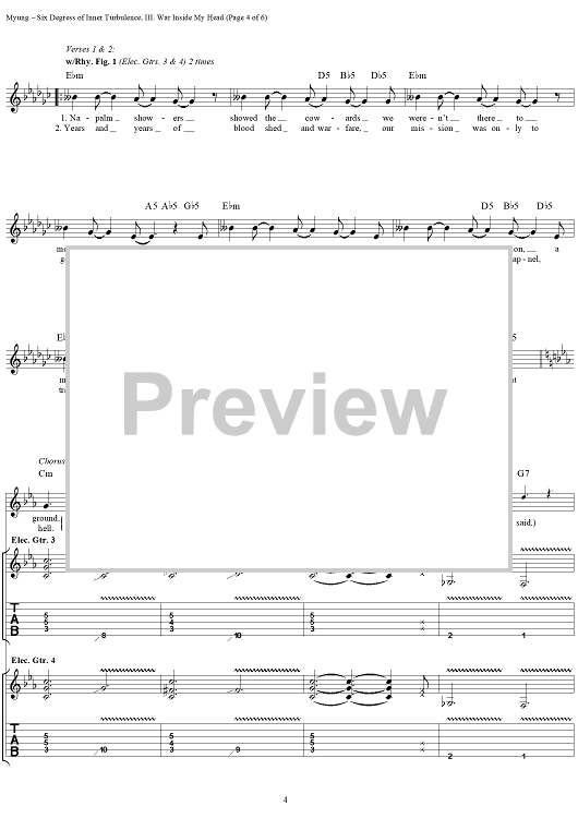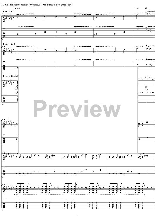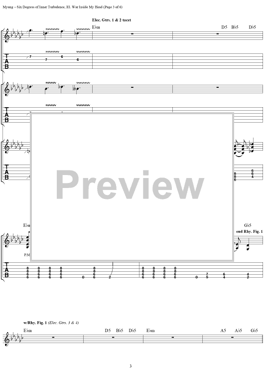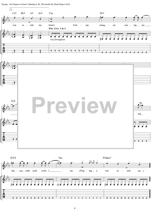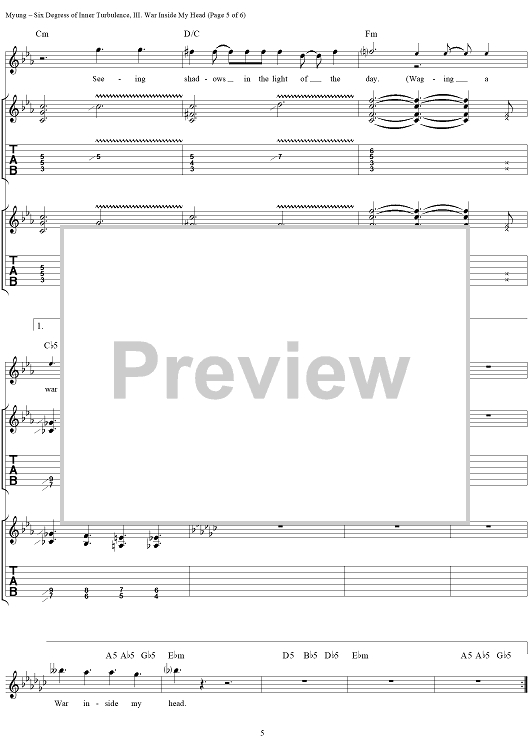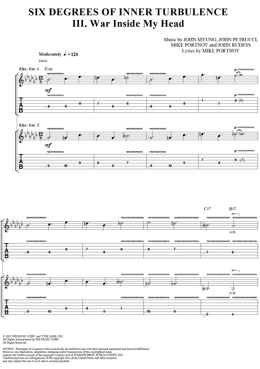 Digital Sheet Music for Six Degrees of Inner Turbulence - III. War Inside My Head by John Myung, Dream Theater, John Petrucci, Mike Portnoy, Jordan Rudess scored for Guitar Tab/Vocal; id:293421