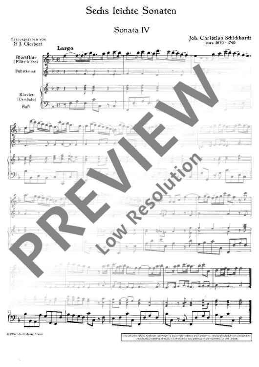 "Six easy Sonatas" Sheet Music by Johann Christian Schickhardt