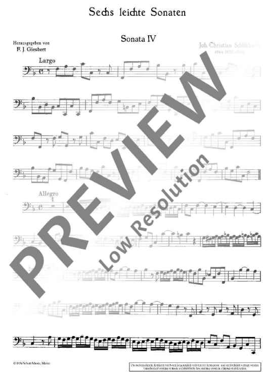 Digital Sheet Music for Six easy Sonatas by Johann Christian Schickhardt scored for Treble Recorder (flute, Violin, Oboe) And Basso Continuo; Cello (viola Da Gamba) Ad Libitum; id:476140