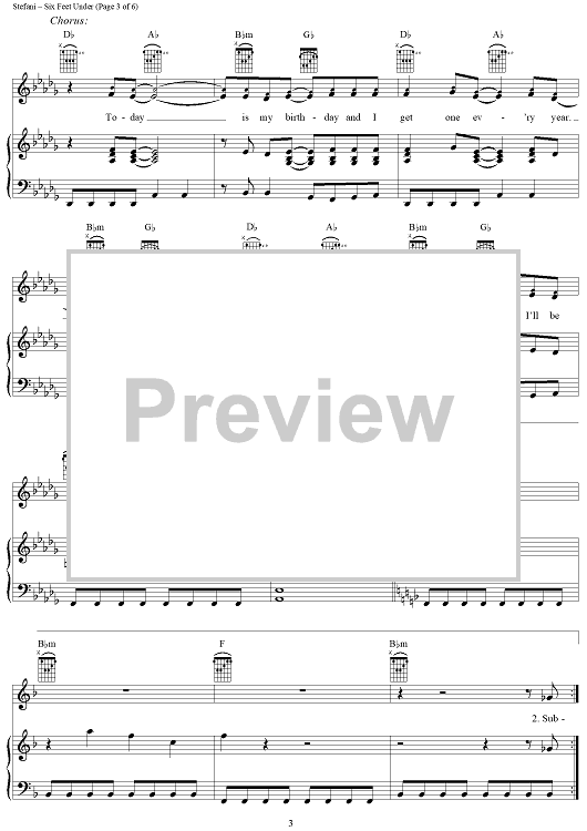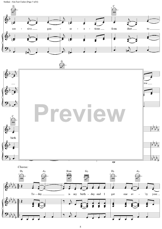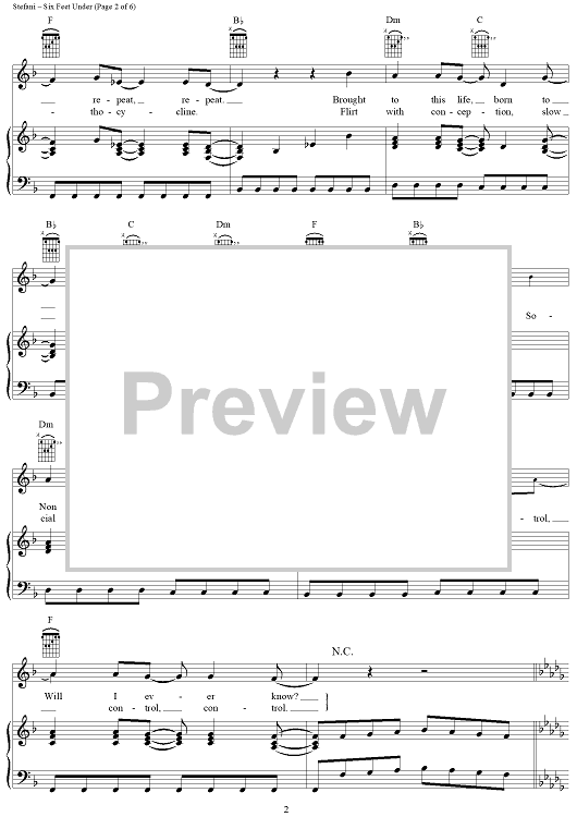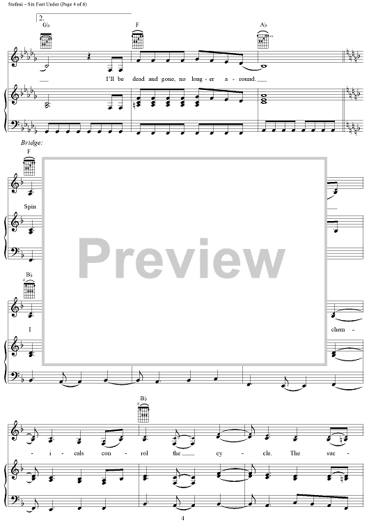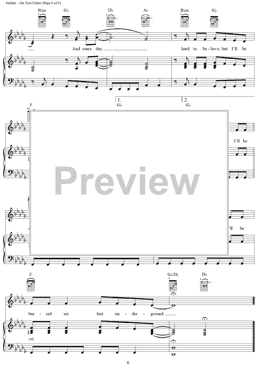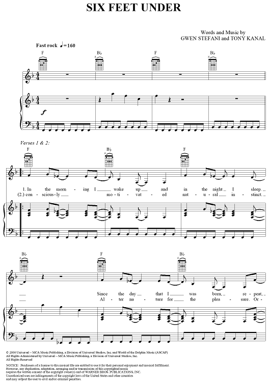 Digital Sheet Music for Six Feet Under by No Doubt, Tony Kanal, Gwen Stefani scored for Piano/Vocal/Chords; id:284128