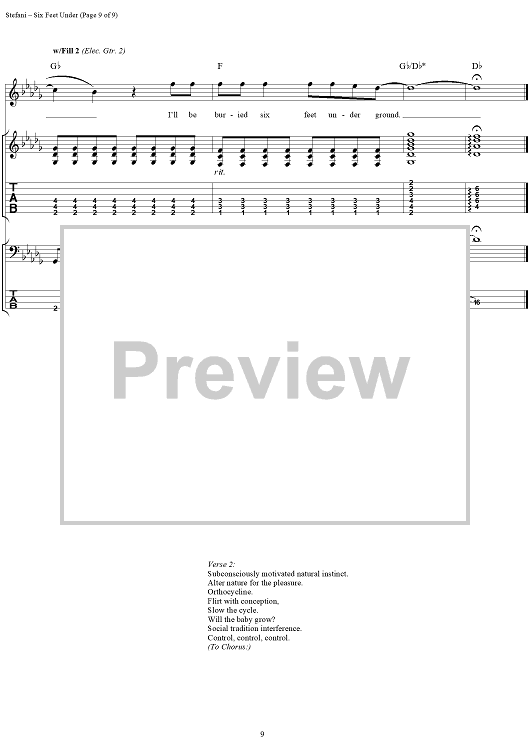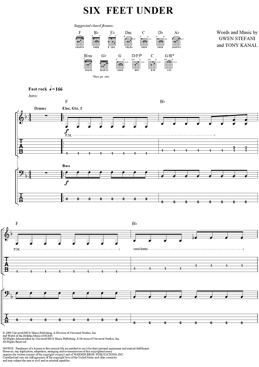 "Six Feet Under" Sheet Music by No Doubt