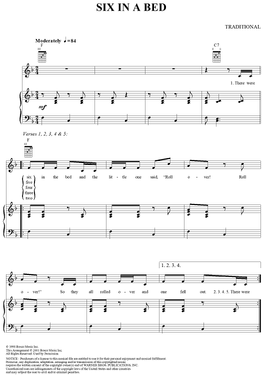 Digital Sheet Music for Six in a Bed by Traditional scored for Piano/Vocal/Chords; id:289185