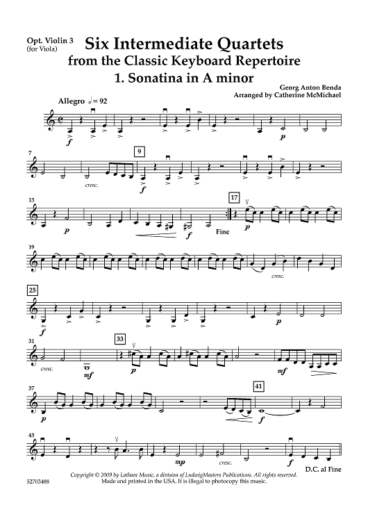 Digital Sheet Music for Six Intermediate String Quartets - Violin 3 (for Viola) by , Various, Catherine McMichael scored for String Quartet; id:464156