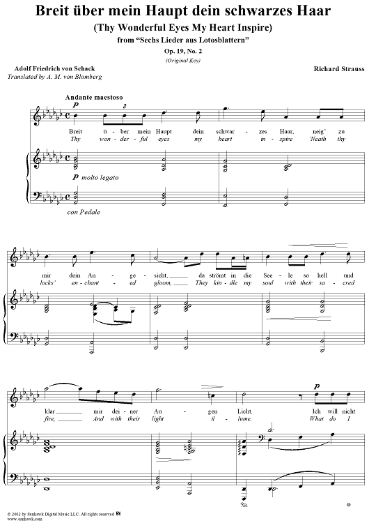 "Six Lieder aus Lotosblattern, Op.19, No. 2: Breit über mein Haupt dein schwarzes Haar (Thy wonderful eyes my heart inspire)" Sheet Music by Richard Strauss