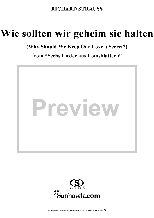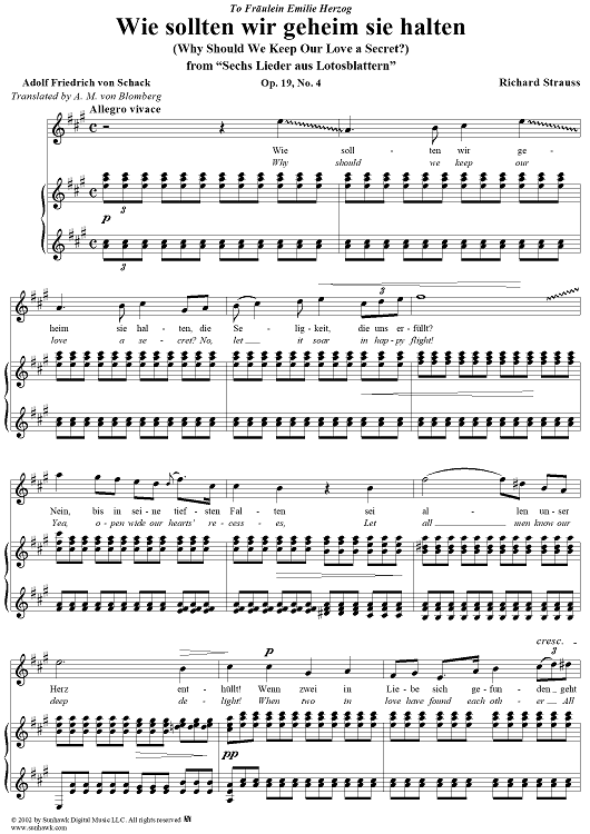 Digital Sheet Music for Six Lieder aus Lotosblattern, Op.19, No. 4: Wie sollten wir geheim sie halten (Why should we keep our love a secret?) by Richard Strauss, Adolf Freidrich von Schack scored for Voice/Piano; id:256063
