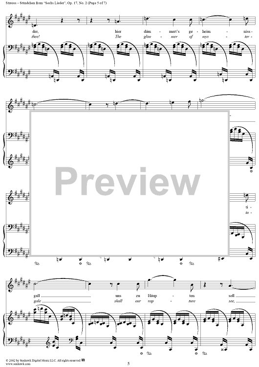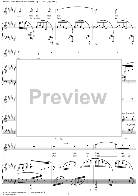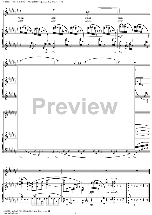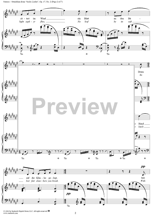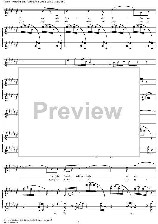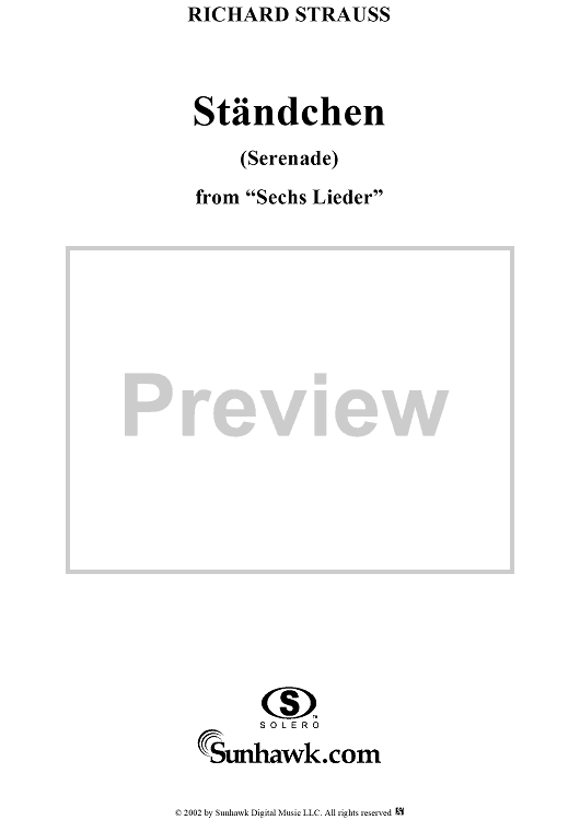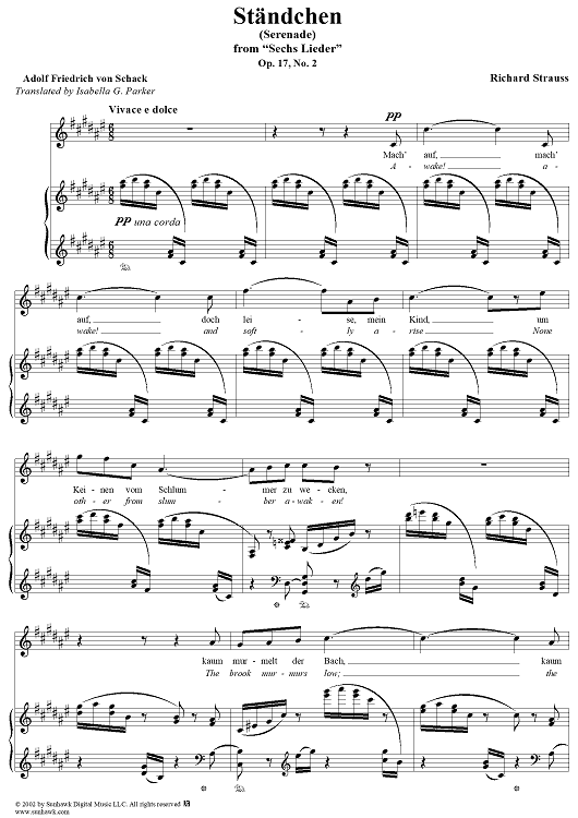 Digital Sheet Music for Six Lieder, Op. 17, No. 2: Ständchen (Serenade) by Richard Strauss, Adolf Freidrich von Schack scored for Voice/Piano; id:256049