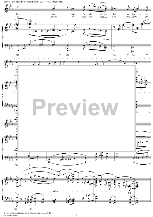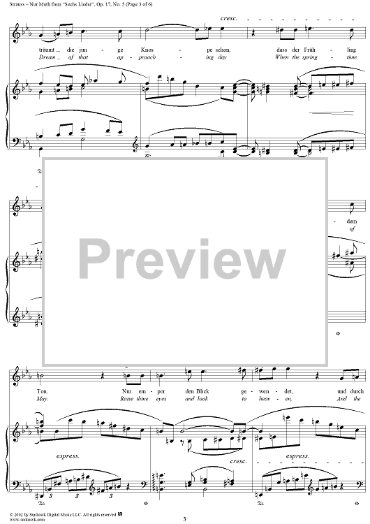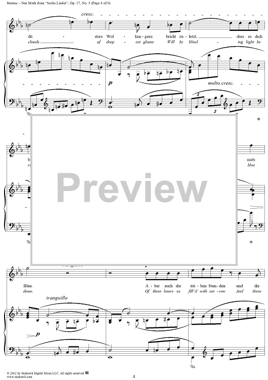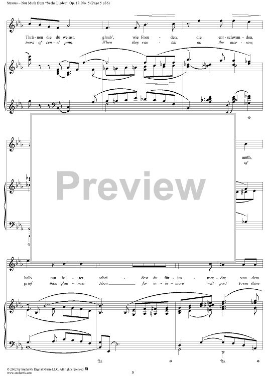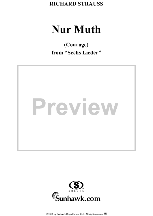 Digital Sheet Music for Six Lieder, Op. 17, No. 5: Nur Muth! (Courage!) by Richard Strauss, Adolf Freidrich von Schack scored for Voice/Piano; id:256071