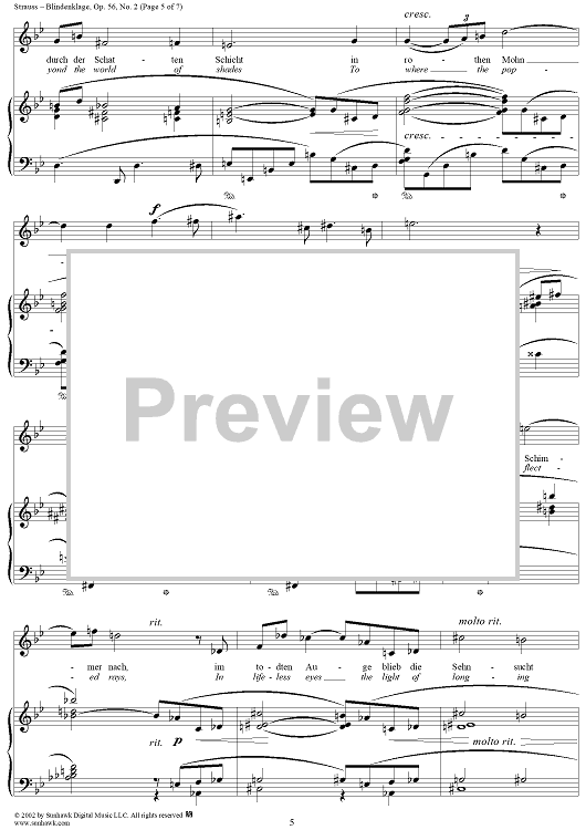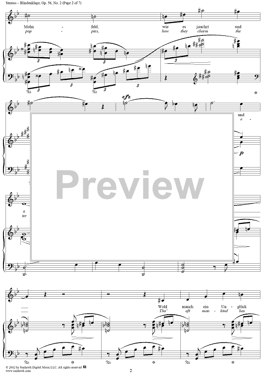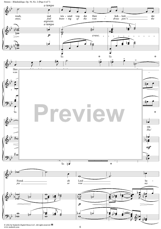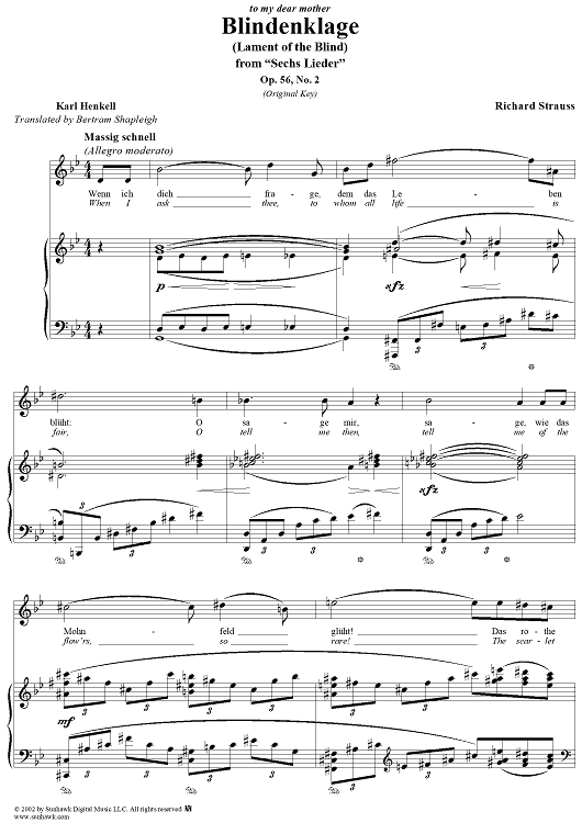 Digital Sheet Music for Six Lieder, Op. 56, No. 2: Blindenklage (Lament of the Blind) by Richard Strauss, Karl Henkell scored for Voice/Piano; id:256085