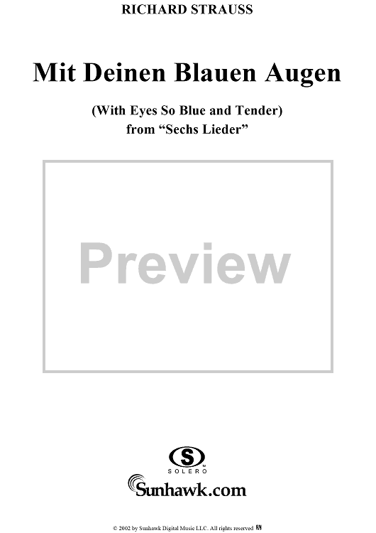 "Six Lieder, Op. 56, No. 4: Mit deinen blauen Augen (With eyes so blue and tender)" Sheet Music by Richard Strauss