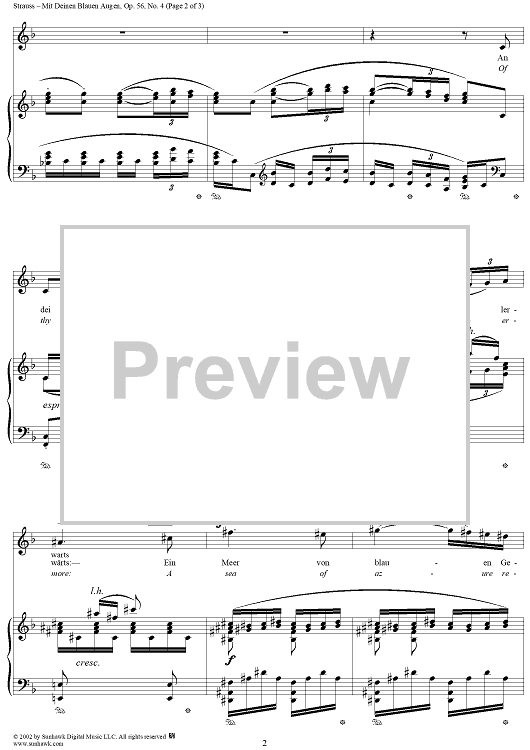 Digital Sheet Music for Six Lieder, Op. 56, No. 4: Mit deinen blauen Augen (With eyes so blue and tender) by Richard Strauss, Heinrich Heine scored for Voice/Piano; id:256086