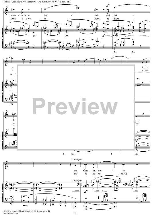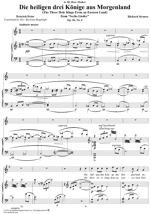 Digital Sheet Music for Six Lieder, Op. 56, No. 6: Three Holy Kings from an eastern land (Die heiligen drei Könige aus Morgenland) by Richard Strauss, Heinrich Heine scored for Voice/Piano; id:256089