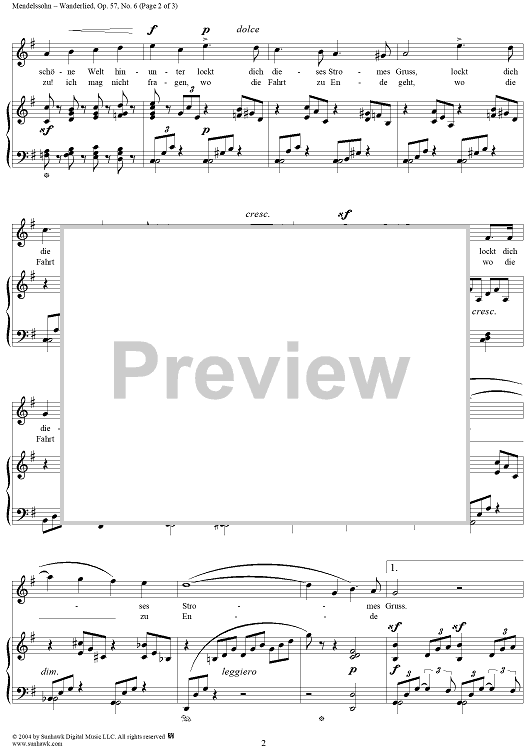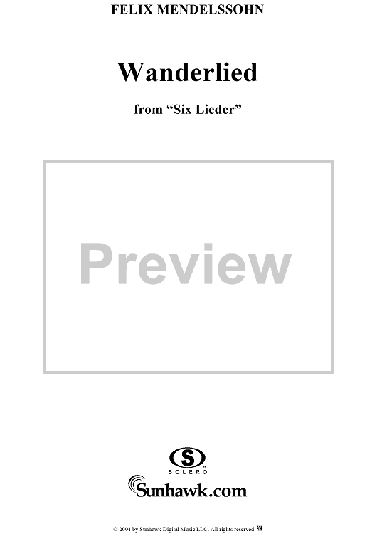 Digital Sheet Music for Six Lieder, Op. 57, No. 6: "Wanderer's Song" (Wanderlied) by Felix Mendelssohn scored for Voice/Piano; id:252106