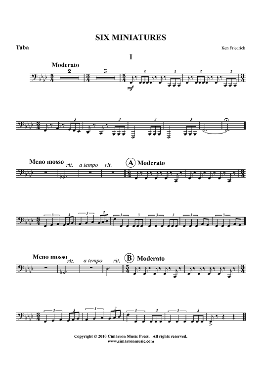 "Six Miniatures - Tuba" Sheet Music by Ken Friedrich