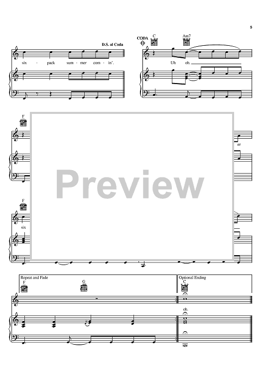 "Six-Pack Summer" Sheet Music by Phil Vassar