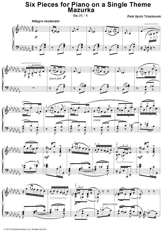 "Six Pieces for Piano on a Single Theme. No. 5. Mazurka" Sheet Music by Peter Ilyich Tchaikovsky