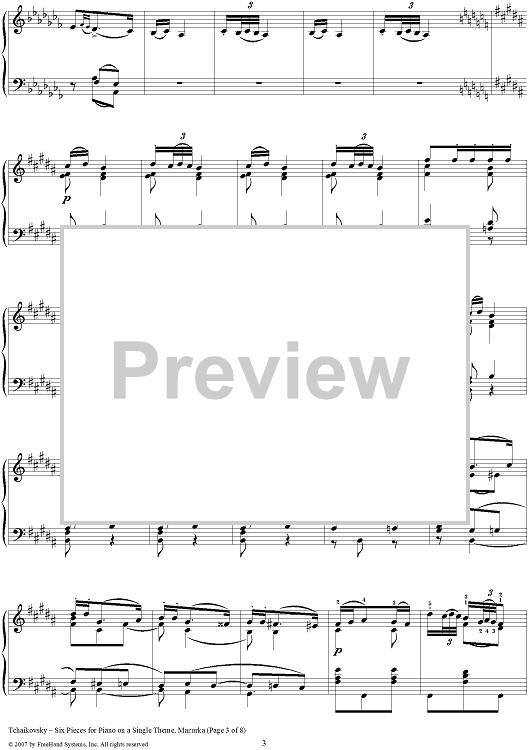 Digital Sheet Music for Six Pieces for Piano on a Single Theme. No. 5. Mazurka by Peter Ilyich Tchaikovsky scored for Piano Solo; id:364977