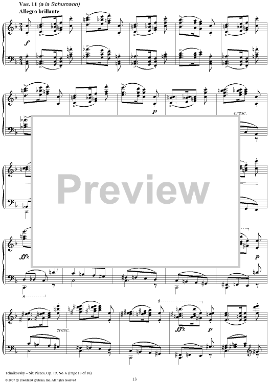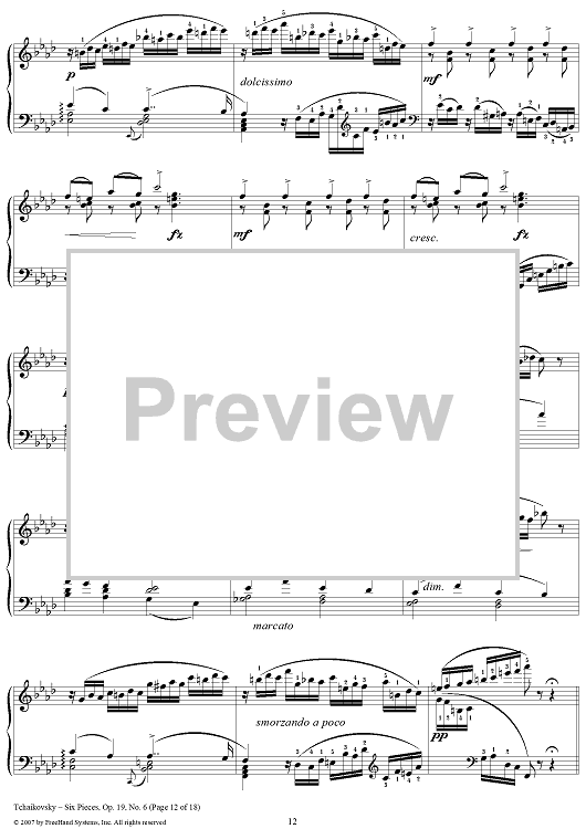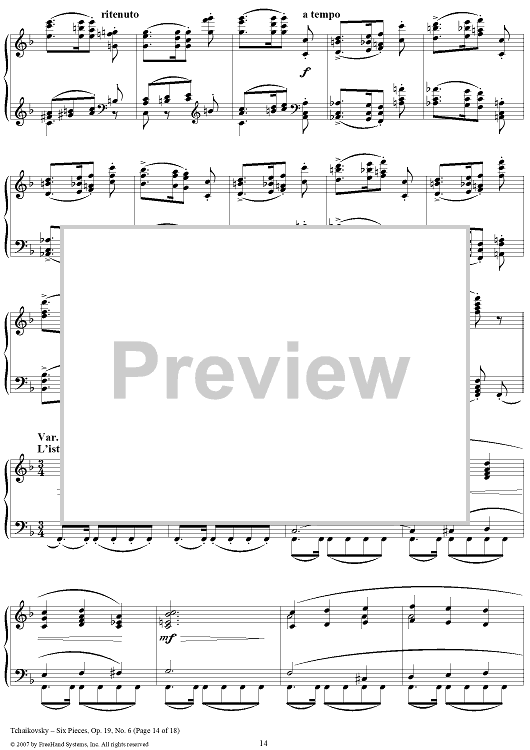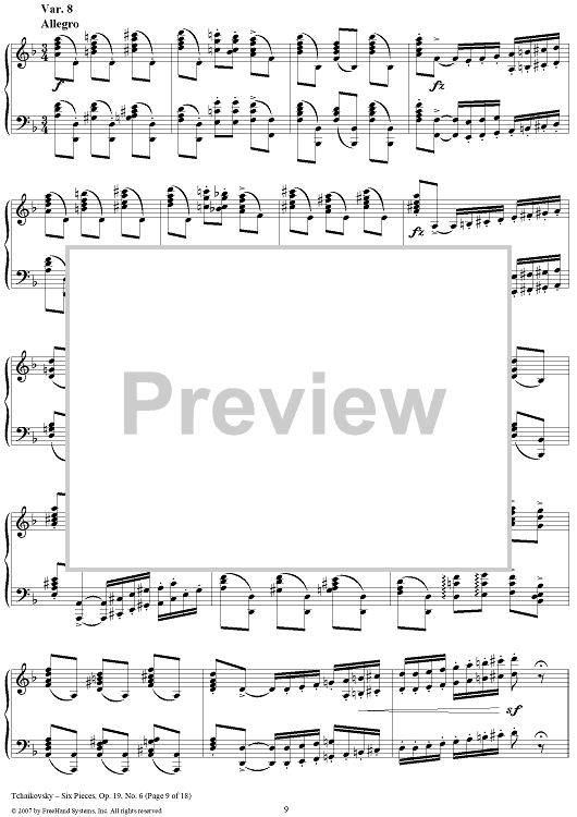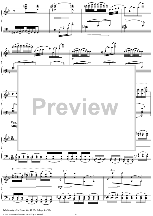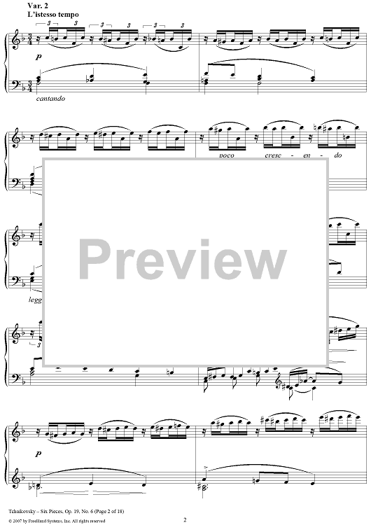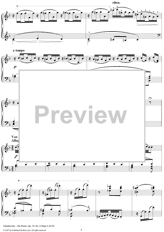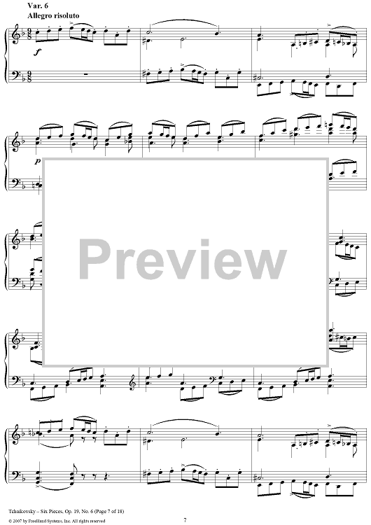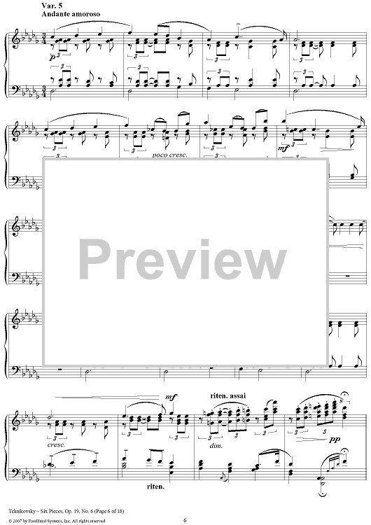Digital Sheet Music for Six Pieces. No. 6. Thema and Variations by Peter Ilyich Tchaikovsky scored for Piano Solo; id:365147