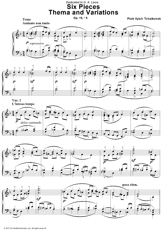 "Six Pieces. No. 6. Thema and Variations" Sheet Music by Peter Ilyich Tchaikovsky