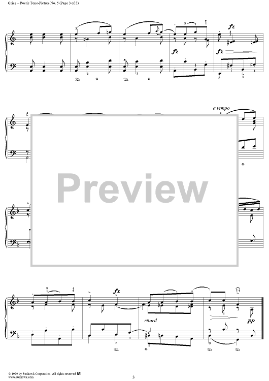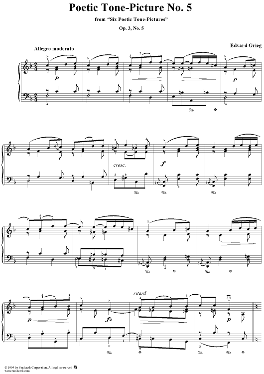 Digital Sheet Music for Six Poetic Tone-Pictures, op. 3, no. 5 by Edvard Grieg scored for Piano Solo; id:118253