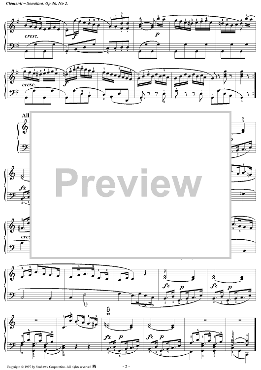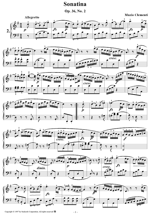 "Six Progressive Sonatinas, Op. 36, No. 2: Allegretto" Sheet Music by Muzio Clementi