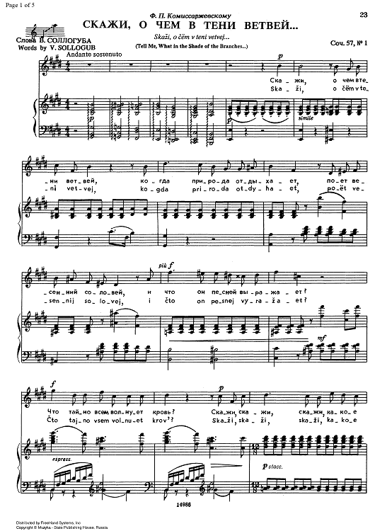 Digital Sheet Music for Six Romances. No. 1. Tell Me, What in the Shade of the Branches by Peter Ilyich Tchaikovsky scored for Soprano or Tenor/Piano; id:337114
