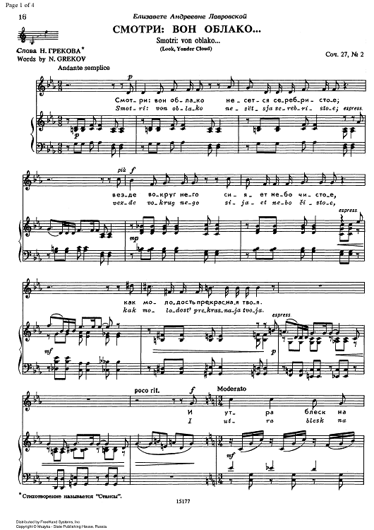 Digital Sheet Music for Six Romances. No. 2. Look: Yonder Cloud by Peter Ilyich Tchaikovsky scored for Alto or Bass/Piano; id:337119