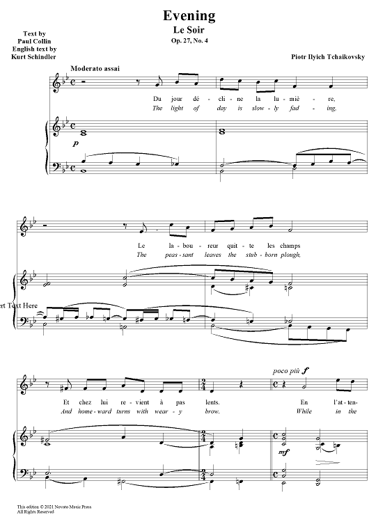 "Six Romances. No. 4. Evening" Sheet Music by Peter Ilyich Tchaikovsky