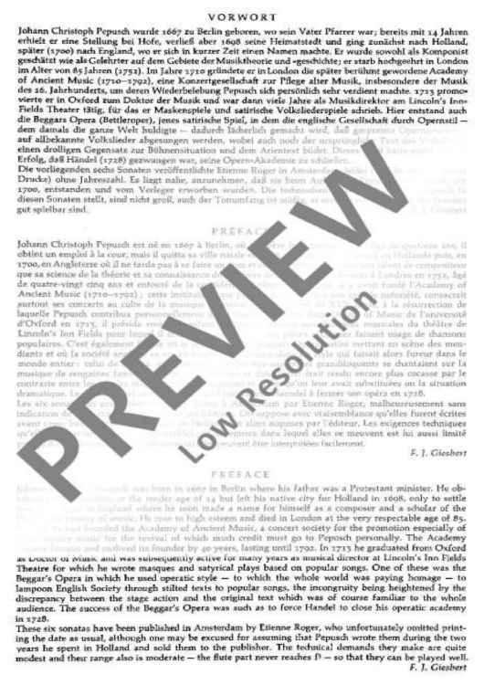 Digital Sheet Music for Six Sonatas by John Christopher Pepusch scored for Treble Recorder (flute, Violin, Oboe) And Basso Continuo; Cello (viola Da Gamba) Ad Libitum; id:476129